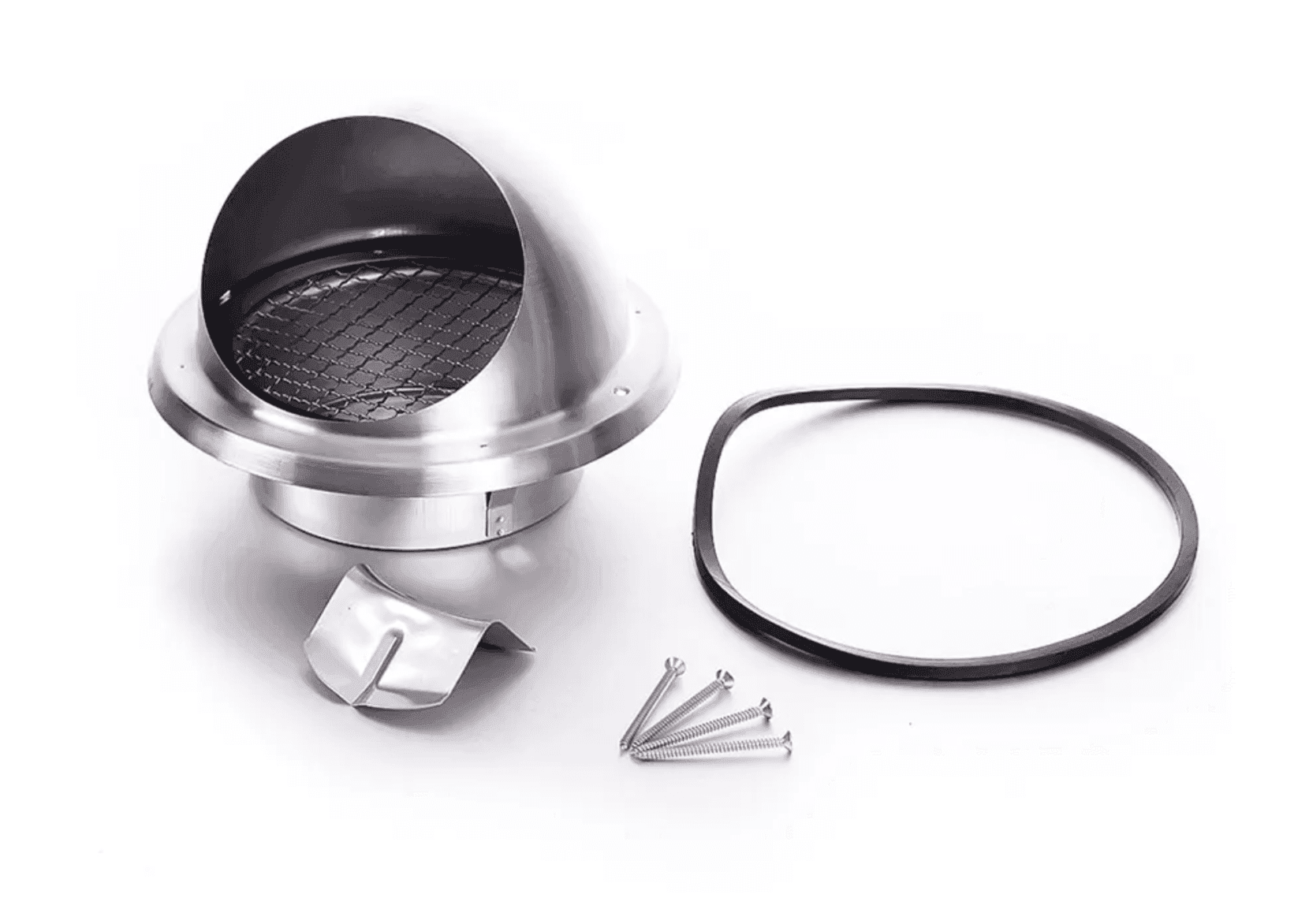 For exhaust and supply. Exists in models; 80,100,125,150,160,180 and 200 mm Made of stainless steel sheet 304, polishing surface finish. With insect screen, lames, fixing clips, rubber sealing. Can be applied outside wall as well as inside. Packed in a transparent bag, including 2 stainless screws. Natural free air circulation.